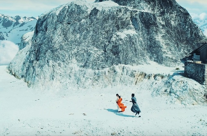 Khung cảnh núi non hùng vĩ có tuyết phủ trắng xóa khiến nhiều người tò mò. Ảnh: Ảnh từ MV