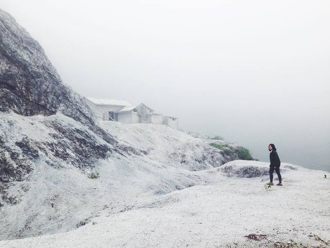 Màu trắng này khiến bạn có cảm giác đang đi ngang qua ngọn núi tuyết. Bên cạnh đó, không khí lạnh ở vùng núi Tây Bắc càng khiến khung cảnh nơi đây trở nên huyền ảo với sương mù và mây sà xuống đường.